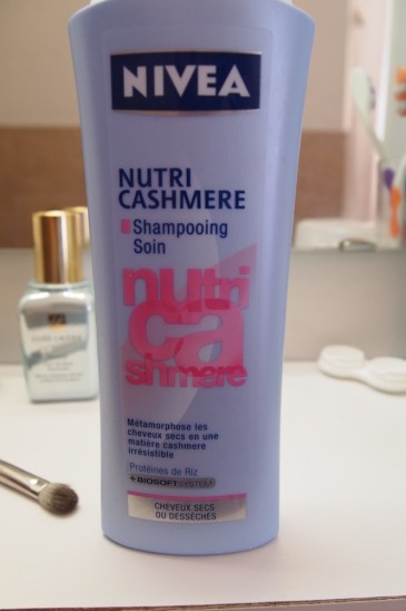 Pour ce faire je verse un peu de shampoing dans une tasse que je mélange avec de l’eau.