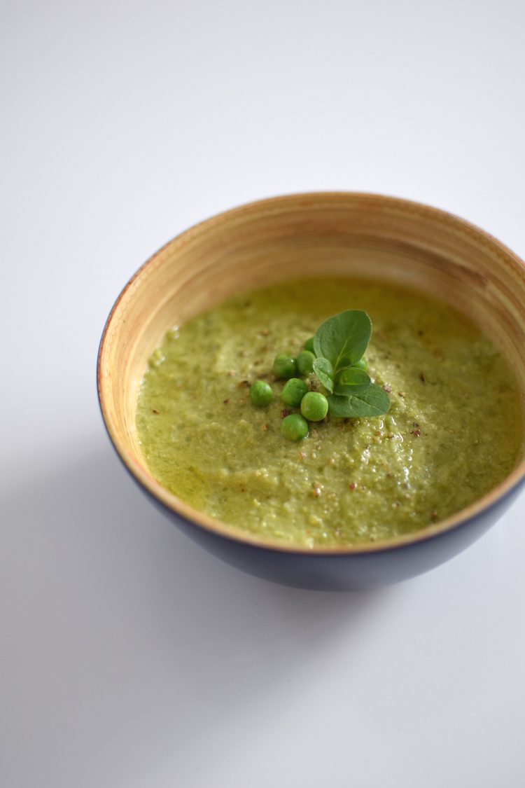 Ça me fait toujours bizarre d’aller dans les profondeurs de mon disque dur pour poster mes trouvailles. Aujourd’hui je me lance avec ce houmous aux petits pois adapté d’un Elle à Table de l’été 2011 (je sais, c’est fou comme le temps passe vite). Bref, à l’époque, comme aujourd’hui, j’étais dans une phase libanaise et j’essayais des variantes de houmous à tout va. Ici sans pois chiche ni tahini, le goût est toujours absolument exquis: la saveur bien présente des petits pois est bien relevée par l’acidité du citron et une pointe d’ail. En mixant les ingrédients, les petits pois toujours surgelés apportent une consistance de smoothie à la préparation, et servi en verrines comme amuse-bouche avec du pain pita, c’est délicieux!