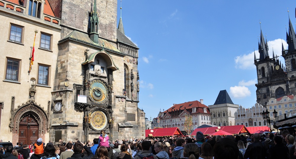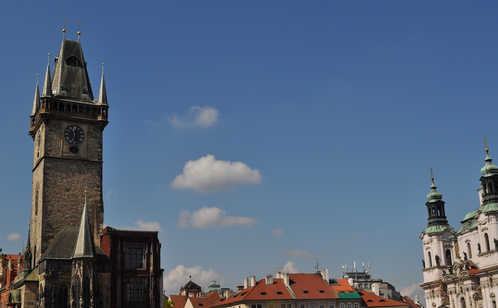 L’après-midi dans la vieille ville Staré Mestro, nous avons essayé de ne pas nous perdre comme dans un labyrinthe afin d’y admirer la place de la vieille ville et son horloge astronomique, mais aussi la tour poudrière, la seule porte gardant l’entrée de la ville. Que Prague est belle avec son coté cubiste et ses coins de rues qui dissimulent de nombreux édifices religieux.