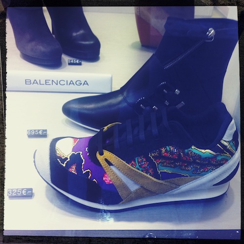 Ces runners Balenciaga. Forme sportswear, imprimé original pour des tennis à la petite touche exotique comme j’aime. J’ai immédiatement aimé l’alliance de la soie avec le cuir nubuck moutarde. Sauf qu’à plus de 300€ la peur de l’ampoule a pris le dessus et je n’ai pas craqué.