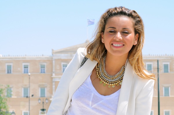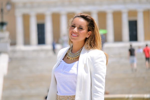 Constatez comme le glitter n’est pas réservé qu’aux soirs sur la Croisette. Pour quitter Athènes il me fallait forcément ma jupe glitter façon boule à facettes et un collier avec tous mes drachmes autour du cou. Vieil or ou argent je voulais juste scintiller autant que la ville brille désormais dans mon cœur !