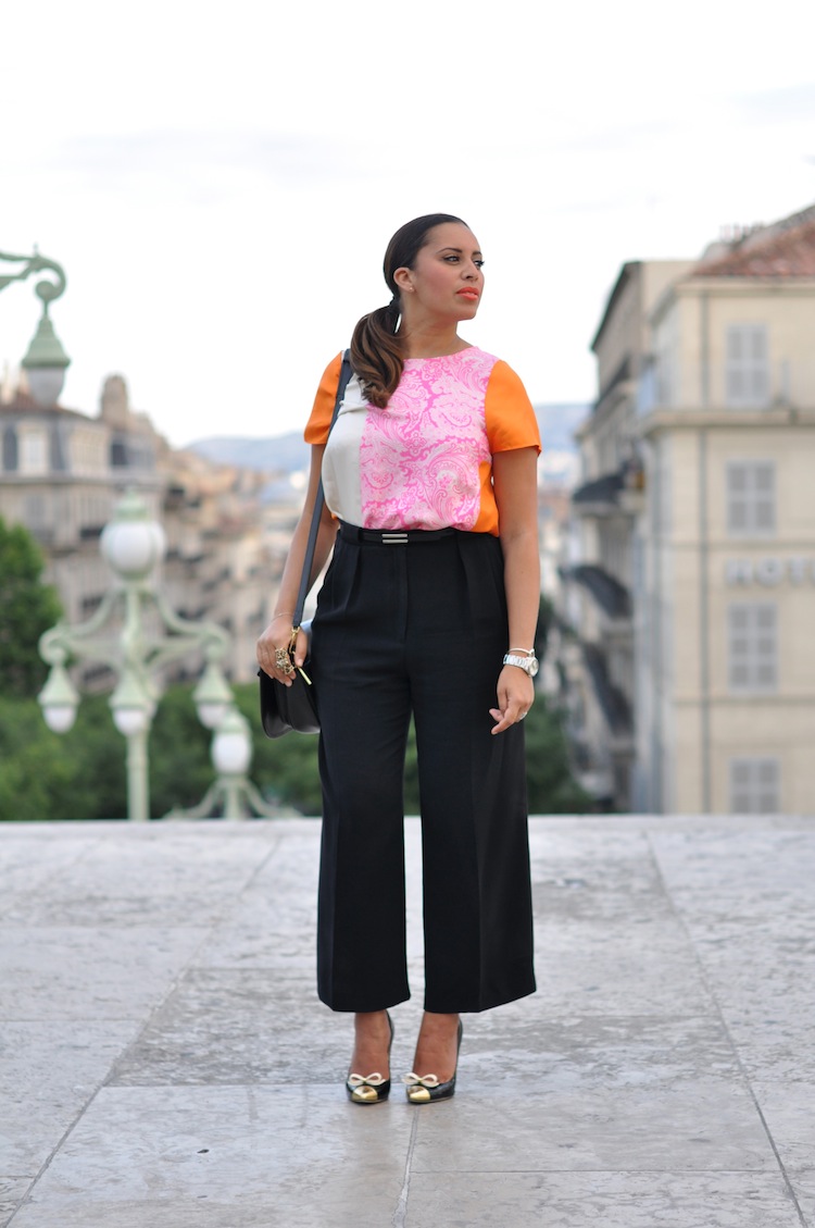 Tu es vraiment magnifique et je suis en admiration devant ton top (entre autres). Les couleurs sont vraiment vives sans faire trop, et j’aime beaucoup l’imprimé cachemire, que je n’ai pas pu trouver sur un haut cet été. A bientôt!