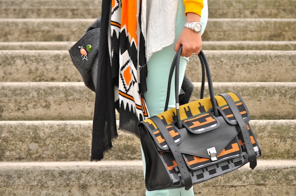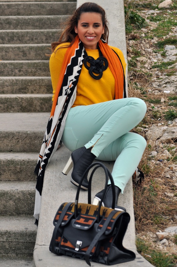 J’adore ton sac il est démentiel !!! Sinon moi aussi je craque carrément pour les jeans de couleur, dont le menthe !!! D’ailleurs j’ai un concours sur mon blog pour gagner un jean de couleur (celle que tu veux) en ce moment si tu veux passer ! Bisou !