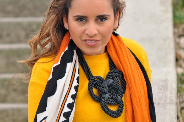 Le cheche et le sac sont bien coordonnés – aucune faute de gout : genial !