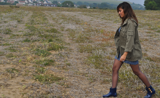 En l’honneur de toutes les “Swinging London-esque” qui visitent mon LookBook voici une nouvelle tenue avec mes fameuses bottines. Elles sont dans le champ de batailles au dessus de la plage du débarquement d’Omaha… Telles des guerrières, parka kaki et bottes de paille, elles ont conquis la Normandie !